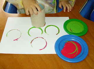 Volta e meia uma mãe, muitooo querida levava materiais recicláveis para a sala, para utilizar com os meninos como desejá-se. No outro dia fizemos estampagem com rolos de papel higiénico! Os meninos adoraram e os resultados foram muito bonitos! Mas, como é uma sala de creche, antes de começar-mos a pintura, brincamos muito e exploramos todas as potencialidades dos rolos de papel! Podemos fazer torres, enfiamentos, carrinhos, etc!!! Experimentem!